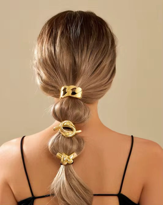 These Metal Hair Ties are made of high quality alloy materials, and are carefully polished and polished to make the luster of the metal part lasting and not easy to fade. These Gold hair cuffs are not easy to break, firmly fixed hair. The diverse design of the metal part can be easily matched with different clothes, showing a multi-level fashion charm.